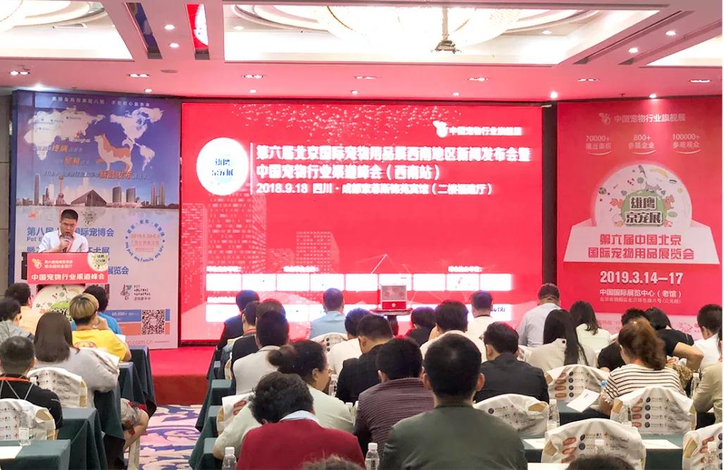 2018年9月18日,第六届中国北京国际宠物用品展览会西南地区新闻发布会在四川成都索菲斯锦苑宾馆二楼福建厅顺利召开!出席的嘉宾有北京中宠联盟科技发展有限公司总经理于建华先生、圣宠宠物行为驯导学校校长任凯先生、圣宠教育培训首席讲师戴沛颀女士、成都派摩宠物科技有限公司和成都七彩枫商贸有限公司及300多位宠物行业经销代理商、宠物门店、宠物医院代表和媒体代表,发布会上,雄鹰京宠展的主办方北京雄鹰国际展览有限公司总经理曹林辉对第六届中国北京国际宠物用品展做了详细介绍: