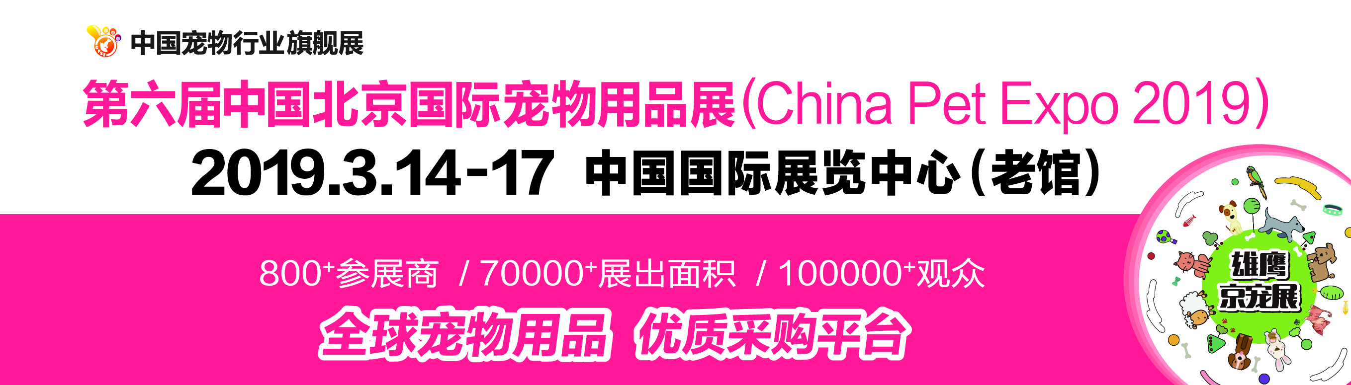 一年又一年的忙,我们即将迎来了2019第六届京宠展,再忙的宠主们,也要为自己的爱宠备货,以免小宠对你“恨之入骨”哈,话不多说,宠主最关心最期待的信息来啦,2019第六届京宠展将于3月14日-3月17日在中国国际展览中心(老馆)举办,这已经是京宠展的第6个年头。每年都少不了常规的新品发布啊、各种狠劲优惠 赠品啊、试用装啊,购购购,拿拿拿、玩玩玩。小编提前通知您备好麻袋,蓄势待发吧。