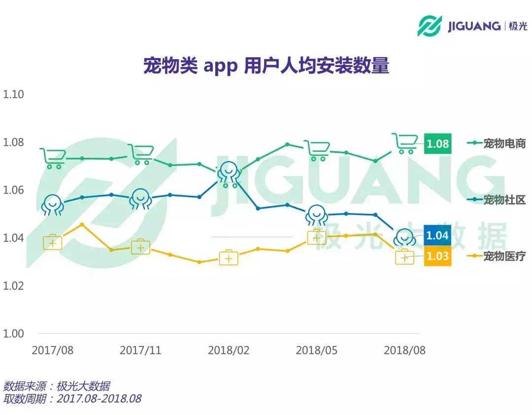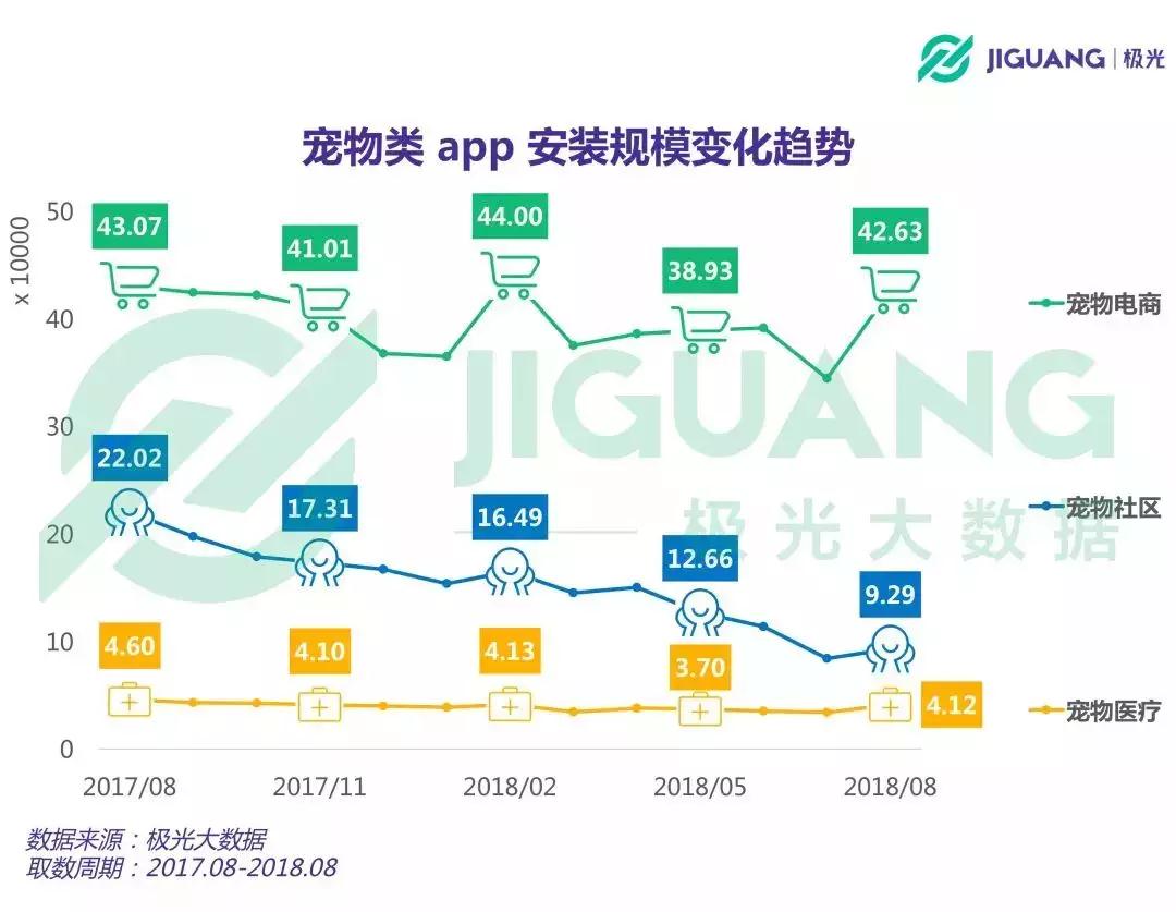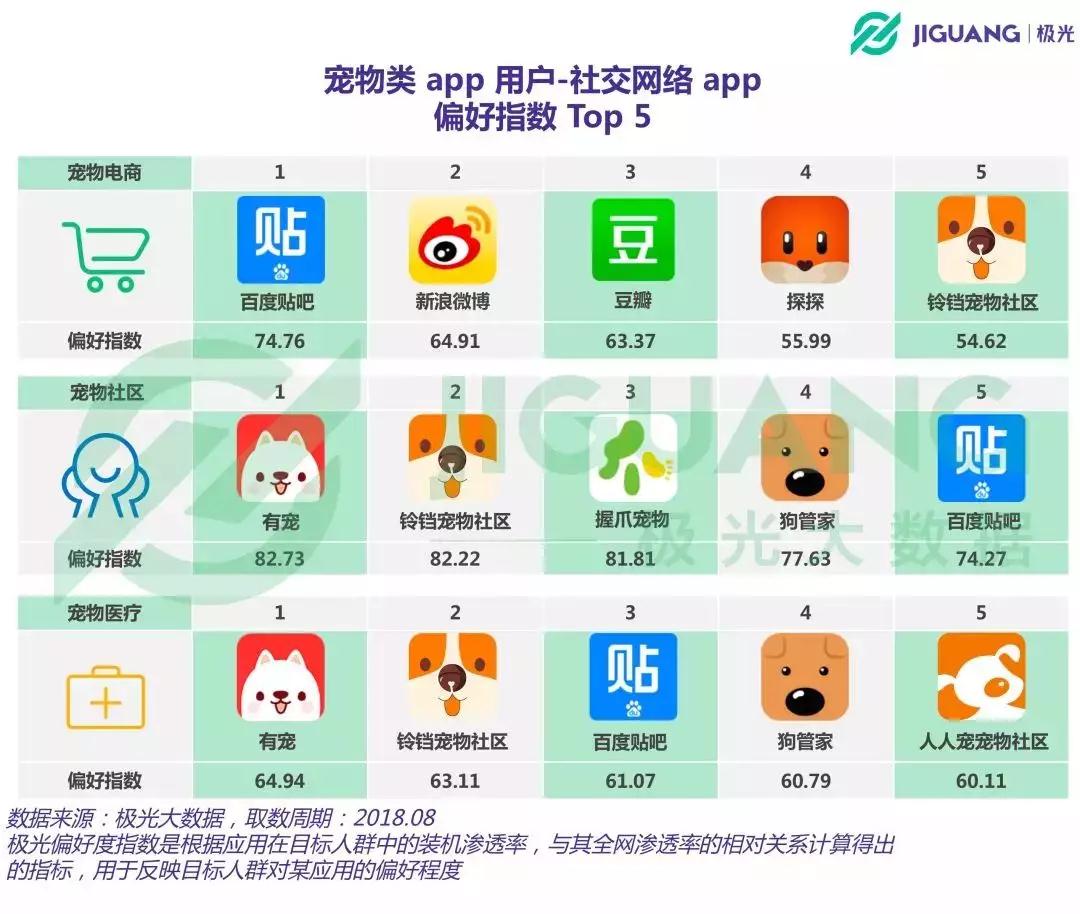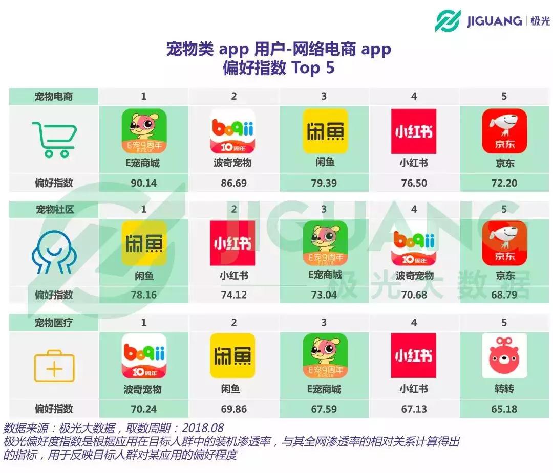 极光大数据将宠物垂直电商类APP归类到网络电商,宠物社区类APP归纳到社交网络,宠物医疗类APP归纳入生活服务类。