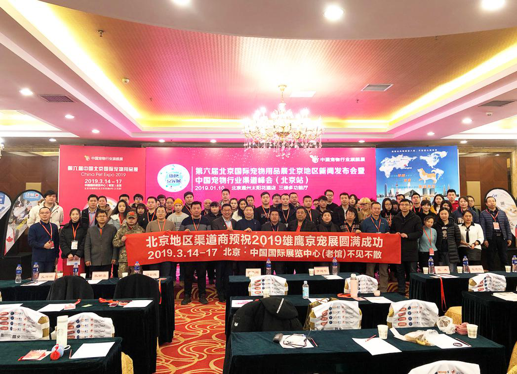 2019年1月10日,第六届中国北京国际宠物用品展新闻发布会在北京通州太阳花酒店三楼多功能厅顺利召开!出席的嘉宾有北京雄鹰国际展览有限公司总经理曹林辉先生、北京中宠联盟科技发展有限公司总经理于建华先生、圣宠宠物董事长阎金胜先生、台湾宠物创业协会秘书长张御丞先生、BOBO宠物空间创始人宁尉先生、猫样生活创始人张杰女士,协办单位:北京明祥达科贸有限公司张春先生、北京宏瑞通达科技有限公司孔祥瑞先生。发布会同期还举办了第六届雄鹰京宠展观众组织全国行-中国宠物行业渠道峰会北京站,吸引了北京及周边地区宠物行业经销代理商、宠物门店、宠物医院及媒体代表等200多名参会代表齐聚一堂,共襄盛举!