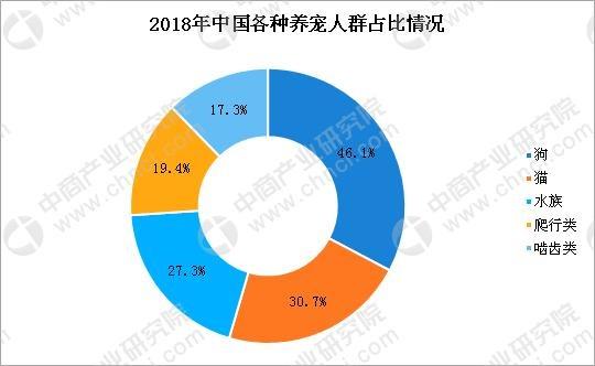 据铃铛宠物携手亚宠展联合发布了《2018年中国宠物行业白皮书》,2018年中国城镇养宠人群达7355万(含水族),其中,养狗人群和养猫人群最多,分别占比46.1%和30.7%。养水族人群占比27.3%,养爬行类人群占比19.4%, 养啮齿类较为小众,占比仅17.3%。2018年中国城镇养狗、养猫人群达5648万人,其中狗主人3390万人,狗数量5085万只,人均养狗1.5万只,猫主人2258万人,共养猫4064万只,人均养猫1.8只。