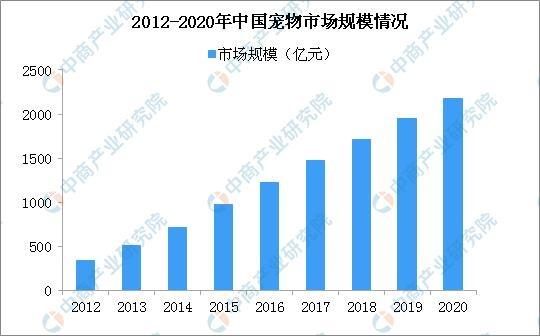 中国宠物行业经过二十多年的发展已逐渐形成规模。2012-2017年我国宠物行业市场规模不断扩大。据统计,2017年中国宠物行业市场规模达到1470亿元,同比增长20.5%。2018年中国宠物消费市场规模达到1708亿。其中宠物狗市场规模1056亿元,宠物猫市场规模652亿元。预计2020年中国宠物消费市场规模将突破2000亿元。
