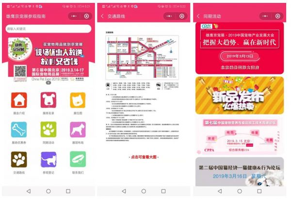 而面向参展观众的服务升级,为方便大众消费观众参观便捷,不用耗时排队,今年首次引进了电子门禁入场,同时京宠展还专门上线了一个电子参观指南小程序——“京宠展参展指南”,里面包含了展会介绍、展会名录、展位图、展商优惠券,同期活动等内容板块,方便参展观众快速便捷查找京宠展期间的配套服务支持以及获取展商的优惠促销活动。