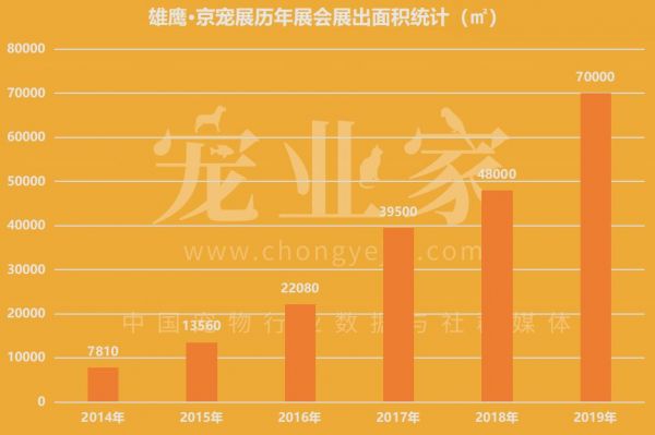 据了解,雄鹰京宠展作为中国最大宠物行业盛会之一,从第一届的2个馆到第四届的6个馆,再到第五届的8个馆,今年展馆覆盖了三元桥老国展全馆的12个馆;展出面积从2014年第一届的7000多平,到今年这一届的70000平,5年时间翻了近10倍。
