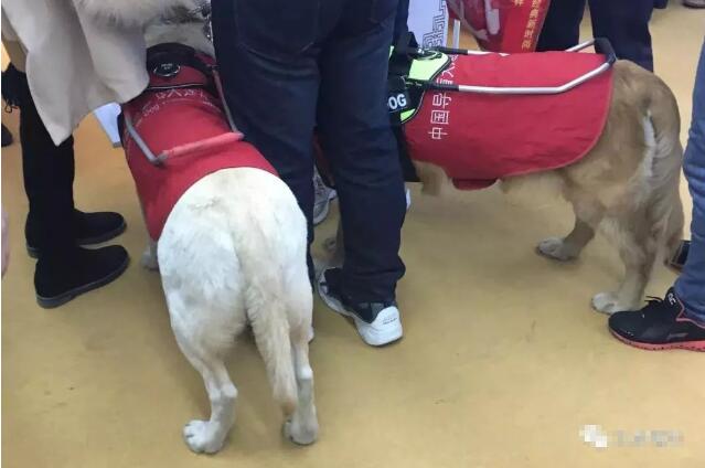 京宠展,是禁止狗狗入内的。但九条在场馆溜达的时候,在服务台看到了两只导盲犬!一只拉布拉多和一只金毛,面对众人的围观及挑逗丝毫没有乱了方寸,训练有素的它们依然尽职尽责地为主人保驾护航!经现场的工作人员核实后,它们顺利入场!