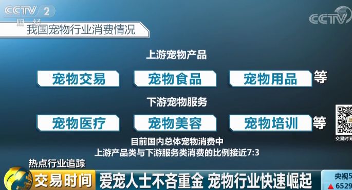 目前来看,养宠一族中,养狗、养猫的人数占比超过七成,花费主要分上游宠物产品,其中包括宠物交易、宠物食品、宠物用品;以及下游宠物服务,包括宠物医疗、宠物美容、宠物培训等。数据显示,目前国内总体宠物消费中,上游产品类与下游服务类消费的比例接近7:3,宠物产品消费占据主流。