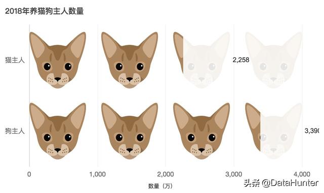 2018年中国城镇注册犬猫宠物的数量为9149万只,同比增长4.61%;城镇养宠户数达到7355万户,同比增长24.41%;大部分的宠物仍为猫狗,猫狗主人占到76.8%,为5648万户。