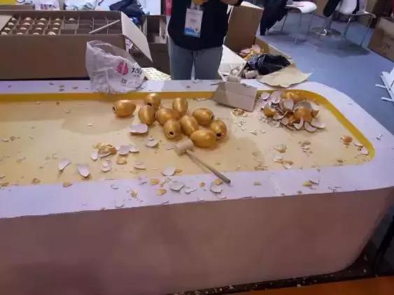 看着一台子的碎片就可以想到以前电视上的那种砸金蛋活动,虽然奖品还是那些,但是砸金蛋的确可以吸引更多的观众,享受一下没有享受过的乐趣。
