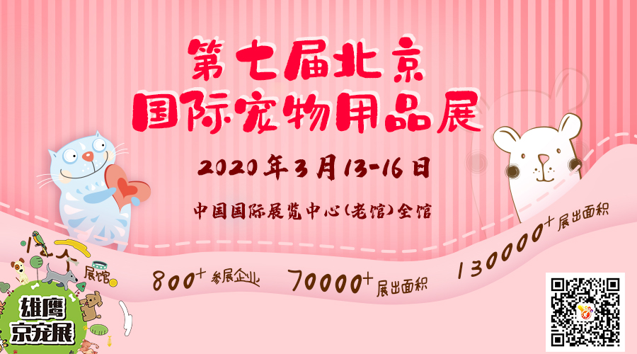 2020第七届北京国际宠物用品展(简称:京宠展)于3月13-16日在中国国际展览中心(老馆)举办,预计观众在100000余次,展出面积70000平米,届时欢迎各相关单位参观参展,2020齐聚北京城,共创辉煌。