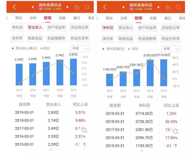 通过同花顺APP数据来看Petmed Express近4个财年财报情况,在2018财年实现了营收增长近10%,净利润增长超56%的好成绩,而2019财年则表现平平。