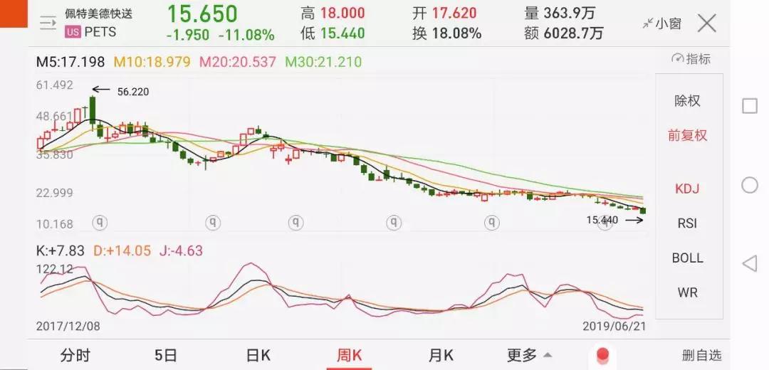 Petmed Express的股价更是从2018年1月26日的高点56.22美元一直波动下跌至2019年6月24日的低点15.65美元,跌幅超过了72%。而去年7月9日Craig-Hallum将其评级从持有下调为卖出。